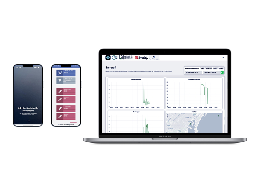 Barreras Inteligentes de Descontaminación con sistemas de sensores integrados que recopilan y rastrean en tiempo real datos esenciales de calidad del agua, a través de una plataforma digital que ofrece análisis económico y ambiental.