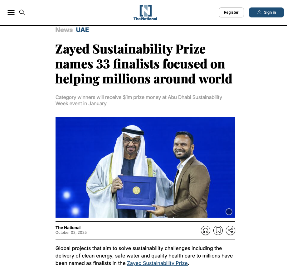 CLIC RECYCLE featured in TheNational: Zayed Sustainability Prize names 33 finalists focused on helping millions around world