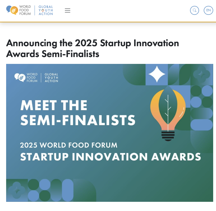 Announcing the 2025 World Food Forum Startup Innovation Awards Semi-Finalists
