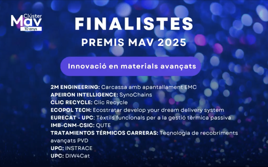 El 27 de noviembre de 2025, la comunidad de materiales avanzados se reunirá en el CosmoCaixa de Barcelona para una edición especial del DIA DEL MAV, que celebra el 10º aniversario del Clúster MAV. El evento reunirá a empresas, universidades y centros tecnológicos para mostrar los proyectos más prometedores en materiales avanzados y sostenibles.